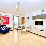 Den 80 m² stora lägenheten erbjuder uteplats, balkong och sitthörna, samt bekvämligheter som luftkonditionering. För extra bekvämlighet finns en bidé, en separat toalett och en dusch på boendet. Badlakan, handdukar och tofflor finns också tillgängliga.